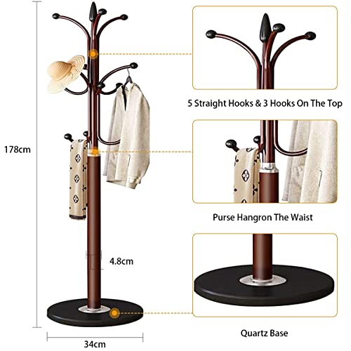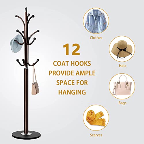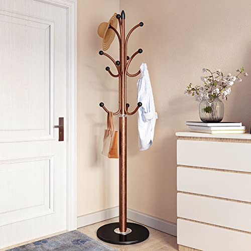 ALMEKAQUZ - حامل معاطف معدن من الميكاكوز شماعة مدخل قائمة بذاتها بتصميم شجرة منظم شماعات للطواقي في المنزل قاعدة رخام طبيعي مع 12 خطاف لتعليق السكارف والشنط والجواكيت برونزي