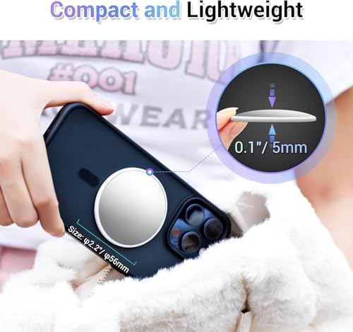 ALMEKAQUZ - مرآة سيلفي مغناطيسية لظهر الموبايل، مرآة ماج-سيف 6 سم متوافقة مع آيفون 15 14 13 12 برو ماكس بلس، مرآة مكياج على ظهر الموبايل لصور السيلفي ومدونات الفيديو والمكياج من الميكاكوز