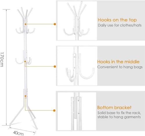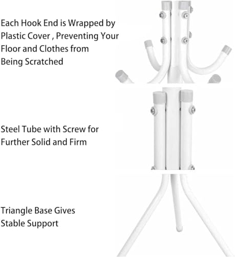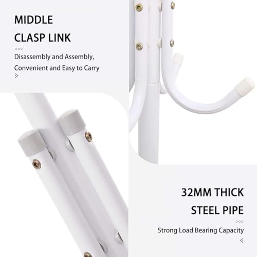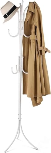ALMEKAQUZ - حامل معاطف معدني مع 12 خطاف، شجرة قائمة بذاتها للمعاطف والقبعات والسترات والمظلات من الميكاكوز، لون أبيض