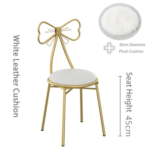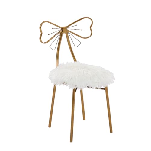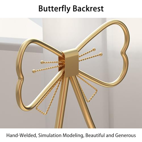 ALMEKAQUZ - كرسي زينة معدني من الميكاكوز، كرسي مكياج بمسند ظهر بتصميم فراشة بلون ذهبي ومبطن بالفرو، كرسي طاولة زينة ذهبي، كرسي مكياج، طاولة زينة ذهبية من الحديد المطاوع