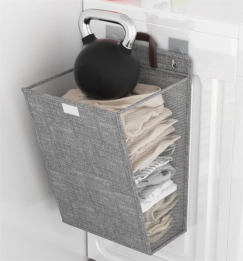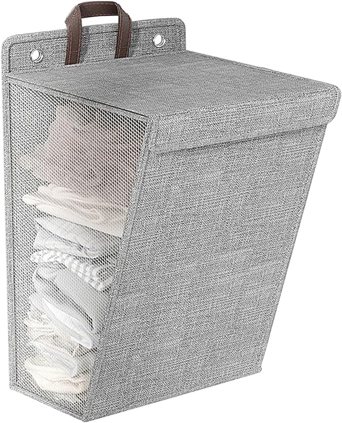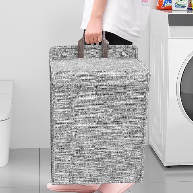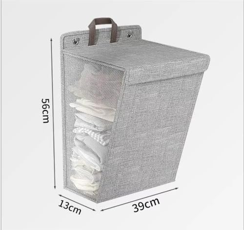 ALMEKAQUZ - سلة غسيل قماشية بغطاء من الميكاكوز، سلة منظمة للغسيل للملابس المتسخة قابلة للطي تثبت على الحائط،، حجم كبير، سميكة لغرفة النوم والحمام، رمادي