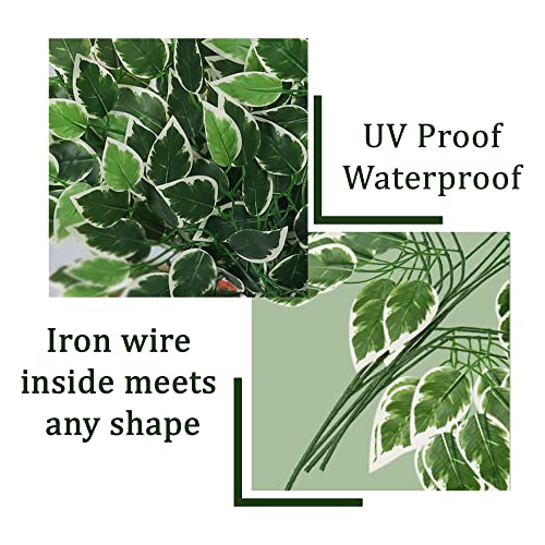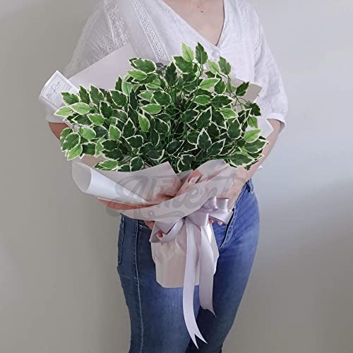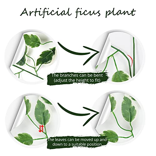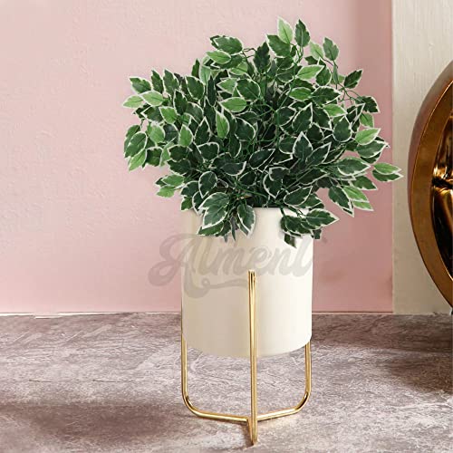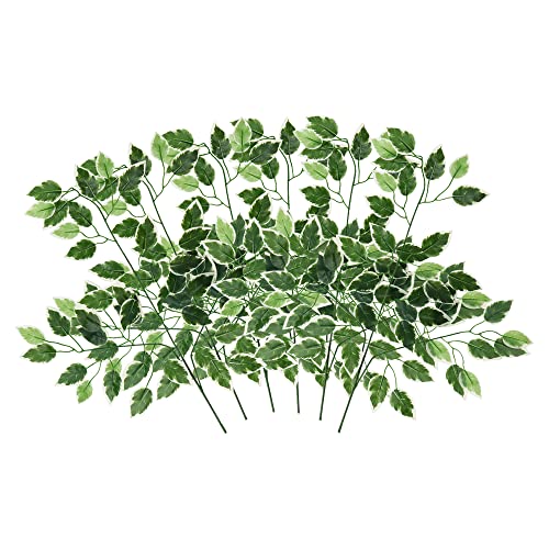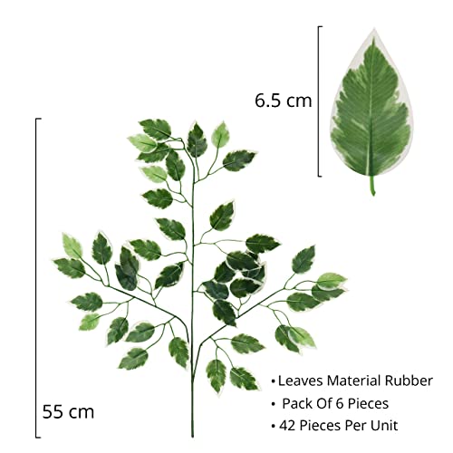ALMENT - فروع أوراق اللبخ الاصطناعية من ألمينت أغصان تين بنجاميني بملمس حريري ولون أخضر للأماكن الداخلية والخارجية والشرفة يمكن استخدامها لديكور الجدران في حفلات الزفاف أخضر-أبيض 6 قطع