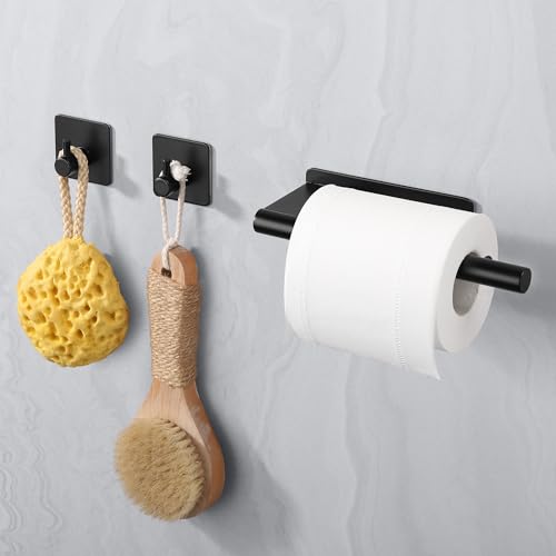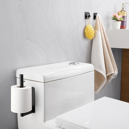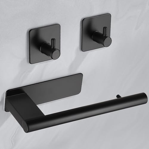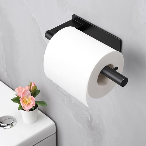 ALOCEO - حامل ورق التواليت من الوسيو، حامل ورق التواليت بدون ثقب وقطعتين من الخطافات اللاصقة، حامل بكرة التواليت من الستانلس ستيل للحمام والمطبخ، اسود