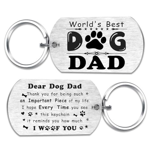 Alotozo - هدايا كلب والد للرجال من اللوتوزو - هدايا عيد الاب، هدايا عيد ميلاد من الكلب الى الاب - سلسلة مفاتيح مخصصة محفورة بالليزر للأب والجراء