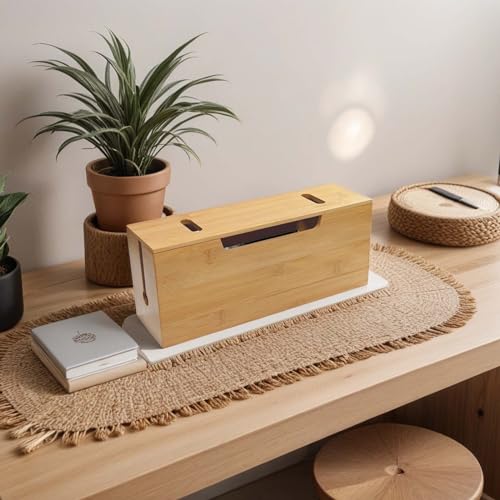 alouweekuky - صندوق خشبي لتخزين الكابلات مصنوع من خشب البامبو من اليوكوكي، صندوق منظم كابلات، إخفاء المقابس الكهربائية