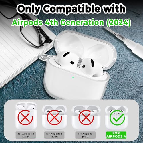 Alovez - جراب حماية شفاف مقاوم للصدمات من الوفيز متوافق مع سماعات ايربودز الجيل الـ 4 من بولي يوريثين مقاوم للحرارة وناعم، عالي الشفافية مع مجموعة تنظيف وسوار يد، يدعم علبة شحن USB-C والشحن اللاسلكي (شفاف)