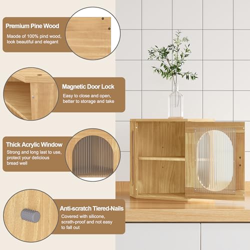 - هيكل من خشب الصنوبر الطبيعي: مصنوع من خشب الصنوبر الفاخر بنسبة 100%، يتميز صندوق حفظ المخبوزات هذا ببنية أكثر متانة مقارنة بالأنواع الأخرى، وقد تم مسح سطحه بزيت واقي عدة مرات للاستخدام طويل الأمد على سطح المطبخ.