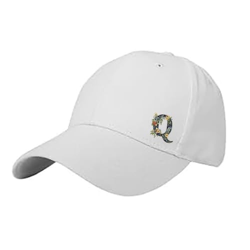 Generic - قبعة بيضاء بتصميم حروف ابجدية مطبوعة بحروف زخرفية (Q)