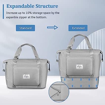 ALPHABITA - شنطة سفر دفل من النايلون 40 سم من الفابيتا ، قابلة للتوسيع والطي للنساء خفيفة الوزن ومقاومة للماء لحملها طوال الليل (40 × 23 45 سم) , رمادي 40*23*45 centimeters