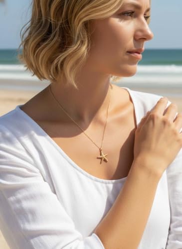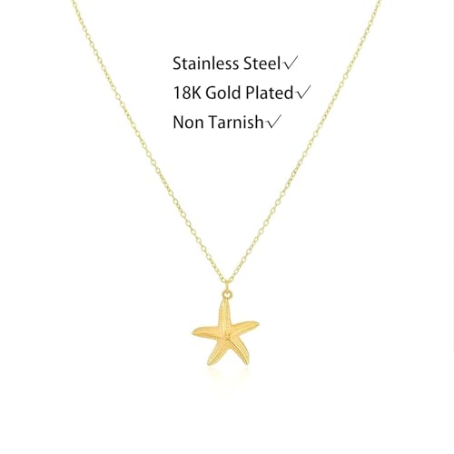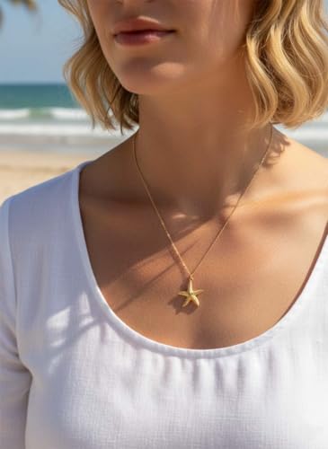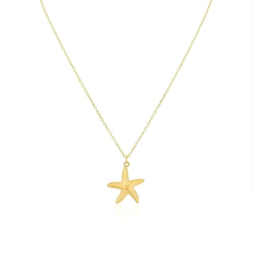 ALRNBY - عقد على شكل نجم البحر للنساء من الرنبي، عقد ذهبي غير لامع بطبقات صدف، مجوهرات صيفية للشاطئ
