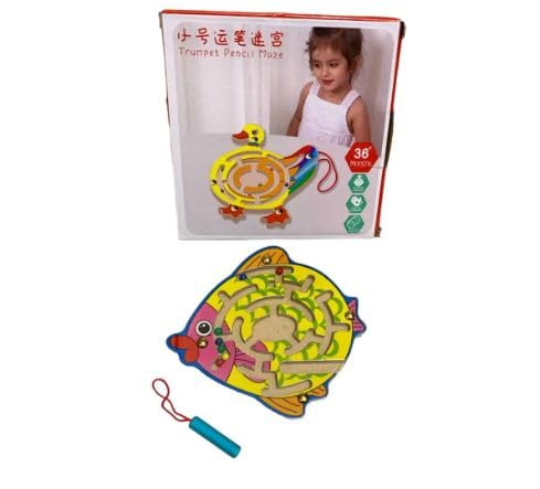 - مزايا التصميم: أحجية متاهة على شكل سمكة مصنوعة من مواد بلاستيكية متينة، تتميز بمسارات وتحديات جذابة.