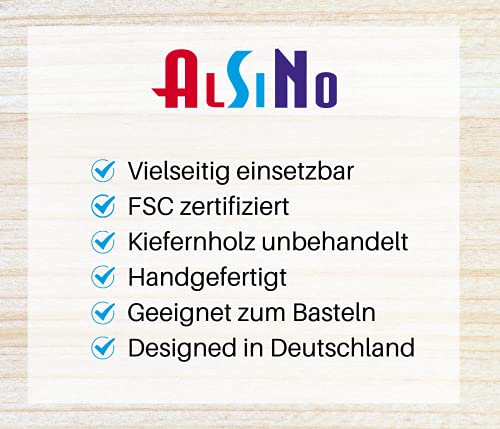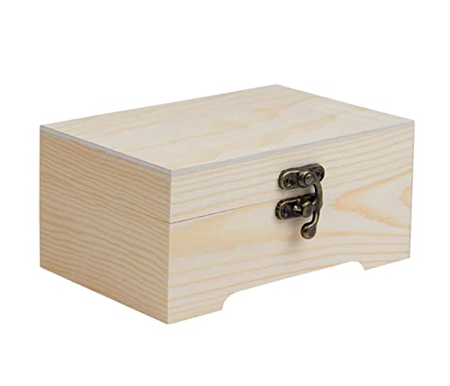 Alsino - صندوق من الخشب بغطاء خشب الصنوبر السينو مقاس 15 × 10 7 سم تخزين وصندوق هدايا مزخرف الصلب غير المعالج F