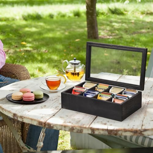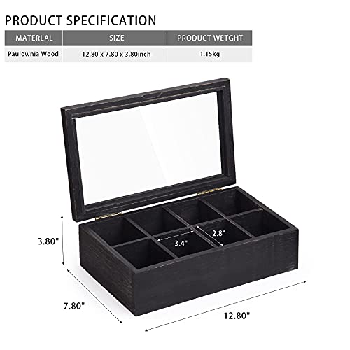 - تصميم فريد - تأتي علبة الشاي ذات الطراز الريفي الساحر هذه مع 8 مساحات تخزين قابلة للإزالة لعرض أكياس الشاي الخاصة بك. الغطاء الزجاجي الشفاف يعني أنه يمكنك بسهولة رؤية العناصر الرائعة في كل مساحة تخزين. يمكن للفلانل الناعم الموجود في الأسفل حماية علبة الشاي جيدًا.