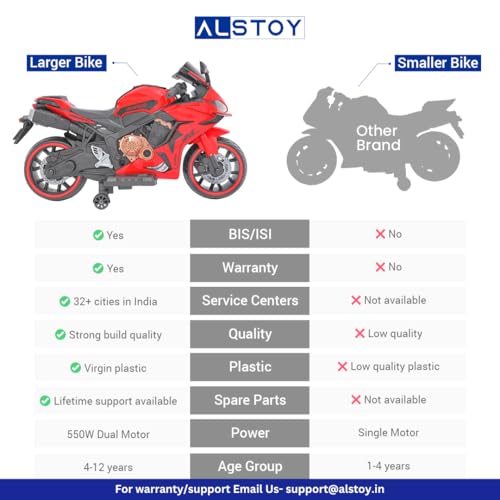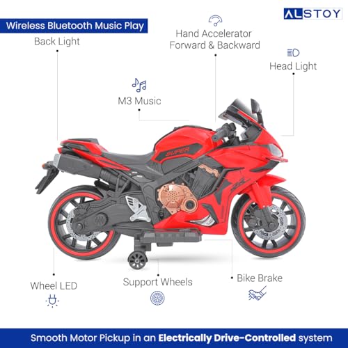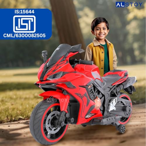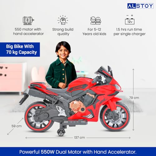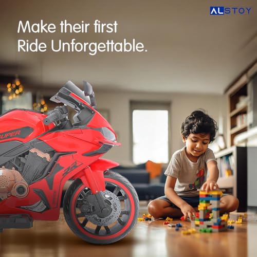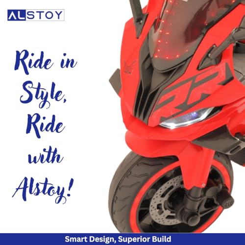ALSTOY - دراجة ركوب كهربائية ار ار للاطفال من الستوي | دراجة تعمل بالبطارية 12 فولت قابلة لاعادة الشحن للاطفال | موسيقى بلوتوث | سعة 70 كجم | معتمدة من BIS/ISI | للاولاد والبنات من سن 5 الى 12 | ضمان 6 اشهر |