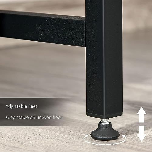 - إطار معدني: هيكل صلب يضمن متانة مكتب الكمبيوتر الصغير ويحافظ على شكله. مزودة بوسائد قدم قابلة للتعديل لحماية أرضيتك وضمان توازن إضافي.