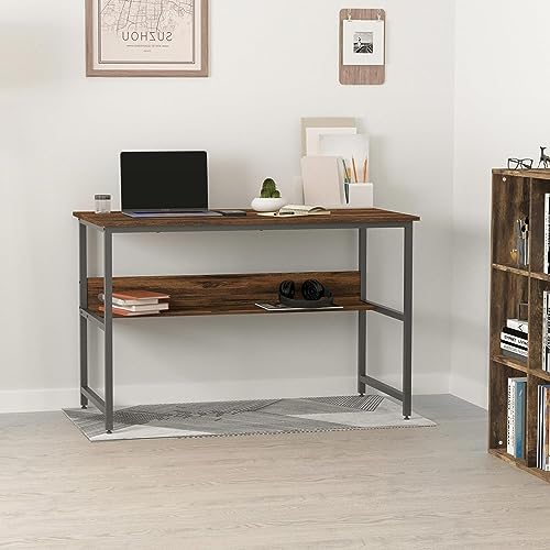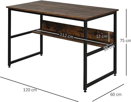 Generic - مكتب 120 سم في 60 سم مع رف تخزين باطار معدني للمنزل والمكتب والدراسة والكتابة من التميز المعدني (بني)