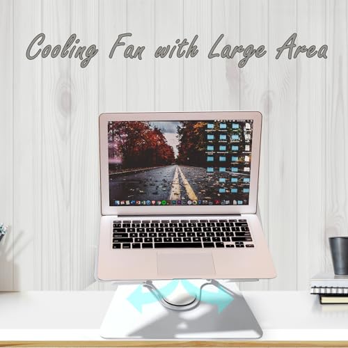 KRESHU - حامل لاب توب مكتبي من الألومنيوم قابل للدوران بزاوية 360° مع مروحة مزدوجة، بتصميم مطوي ومحمول وبملائمة عالمية لأجهزة نوت بوك وماك بوك وأجهزة اللاب توب - 25 سم، فضي