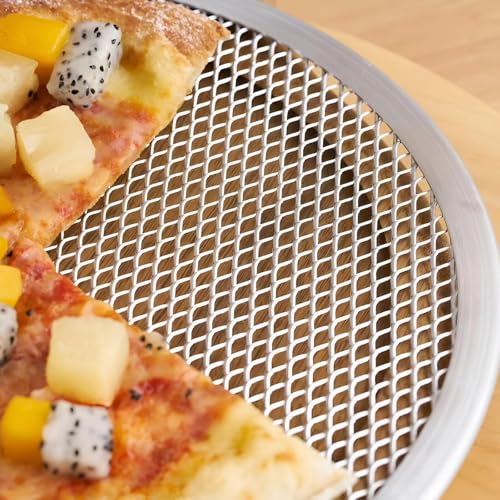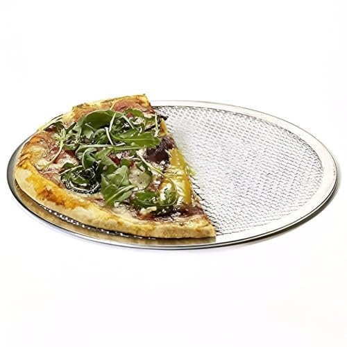Generic - صينية خبز من الألومنيوم - صينية شبكية مستديرة لطهي وتقديم البيتزا والمخبوزات ، تتميز بفتحات تهوية لتوزيع الحرارة الأمثل ، اللون الفضي (1 قطعة مقاس 35)