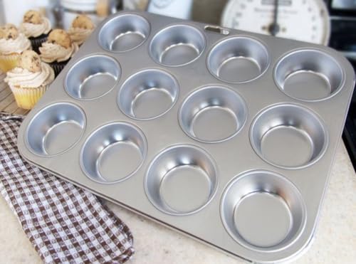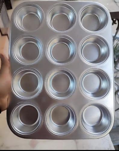 Generic - صينية خبز مافن كب كيك من الألومنيوم، ١٢ قالب، مقاس كبير، فضي