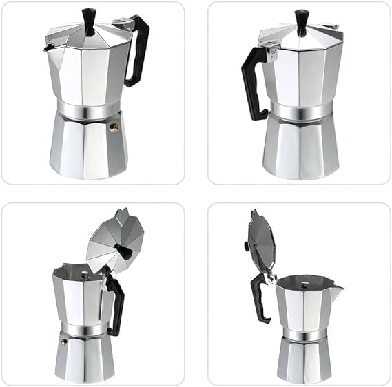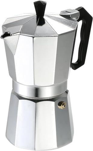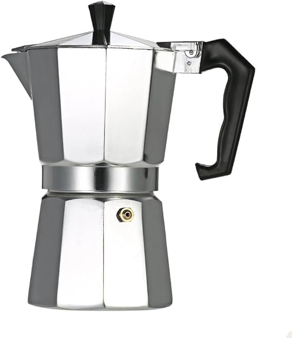 Generic - إبريق ألومنيوم للاسبريسو والموكا مناسب للاستخدام مع موقد الغاز والفرن الكهربائي، لون فضي، سعة 3 أكواب