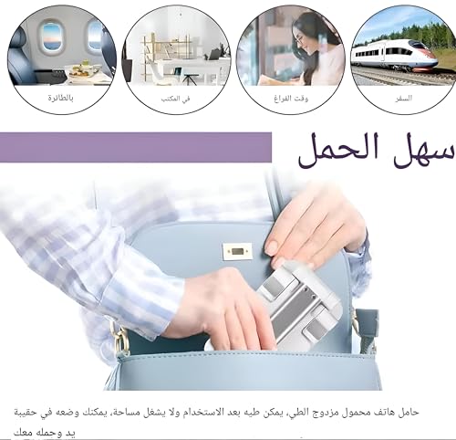 - يتميز حامل الهاتف هذا بتصميم مدمج وخفيف الوزن، ما يجعله سهل الحمل والتخزين في أي مكان، سواء في شنطة الظهر أو حتى جيبك أثناء تنقلك. فسواء كنت في المنزل أو المكتب أو أثناء التنقل، يمكنك حمله معك بسهولة واستخدامه في أماكن مختلفة مثل غرفة النوم أو المطبخ أو أثناء السفر.