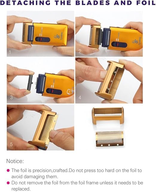 - رقائق معدنية مطلية بخليط معدني من التيتانيوم فائق الصلابة: تضمن الرقائق المعدنية المطلية بخليط التيتانيوم عالية الجودة حلاقة دقيقة ومريحة. تنزلق الشفرات الحادة والمتينة بسهولة على بشرتك، وتلتقط حتى أقصر الشعيرات بدقة.