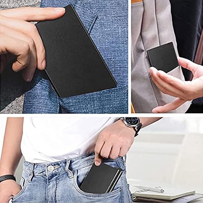 Generic - منظم كروت آمن من الألومنيوم بتقنية تحديد الهوية بموجات الراديو - محفظة منبثقة رفيعة مع حماية من السرقة، تصميم أنيق ومتين