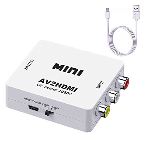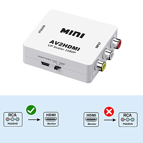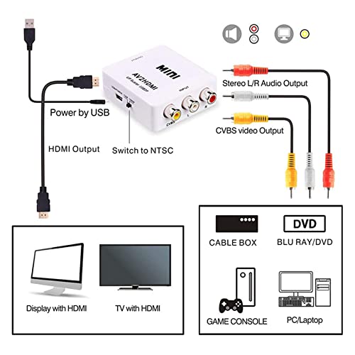 Alwong - محول ار سي ايه الى HDMI، AV الى HDMI، 1080P@60HZ، يدعم PAL/NTSC 3.58/NTSC 4.43/SECAM، ابيض