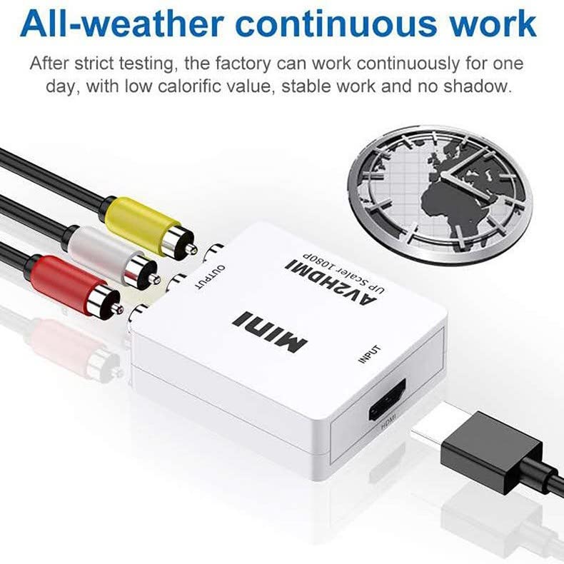 - يحول مدخل ار سي ايه التناظري المركب (الأحمر والأبيض والأصفر) إلى مخرج HDMI 720P/1080P (60HZ)، المعروض على تلفزيون HD/ الشاشة. غير قابل للعكس