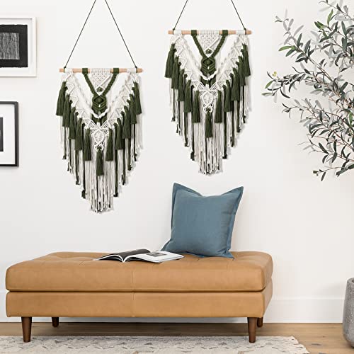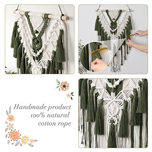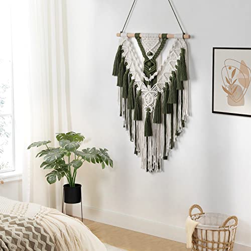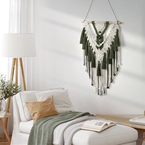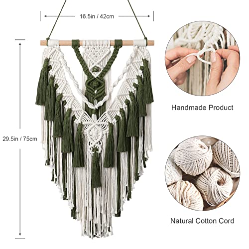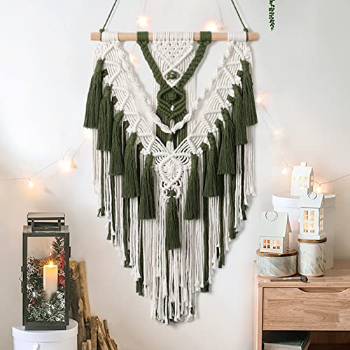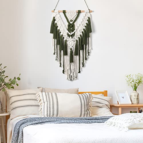 Alynsehom - الينسوم مكرمية بوهيمية معلقة على الحائط مصنوعة يدويا من القطن بلون بيج واخضر منسوجة هندسية مع شرابة زينة فينتاج بوهيمي لديكور لغرفة النوم وغرفة المعيشة والشقة والحضانة - اخضر