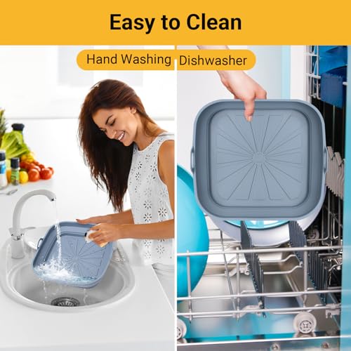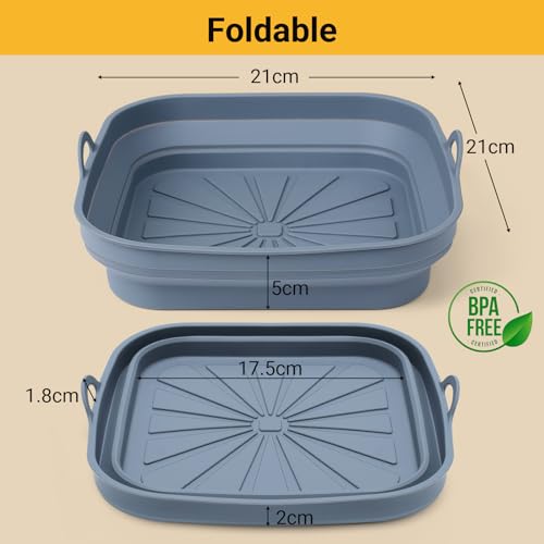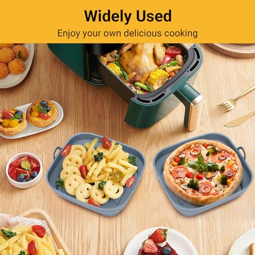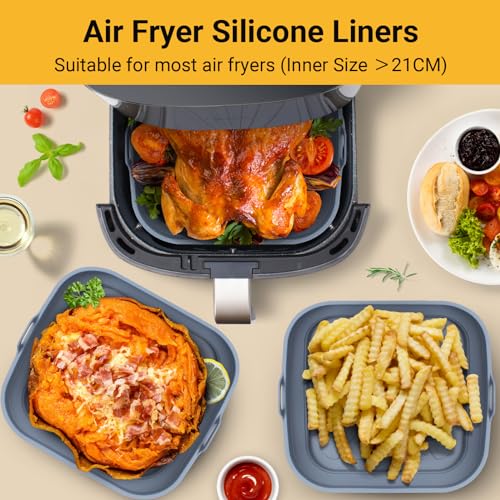 Alyvisun - بطانات مقلاة هوائية، صينية سيليكون قابلة لإعادة الاستخدام وقابلة للطي، سلة مطبخ مربعة متعددة الاستخدامات للمقلاة الهوائية والميكروويف والفرن من اليفيسون، 3 قطع
