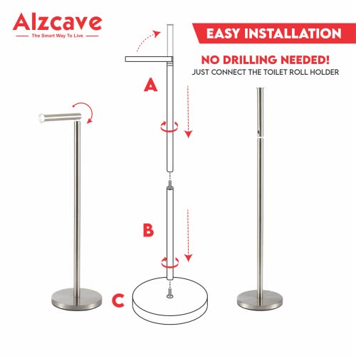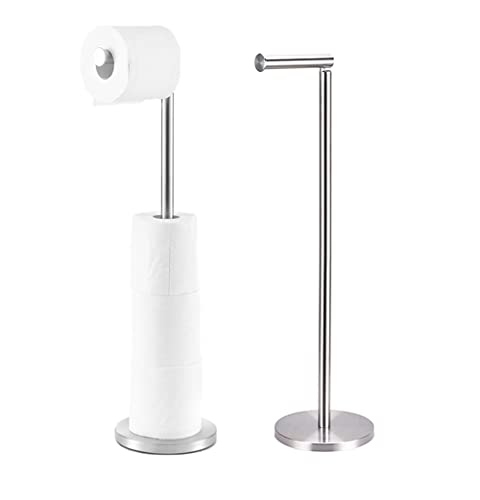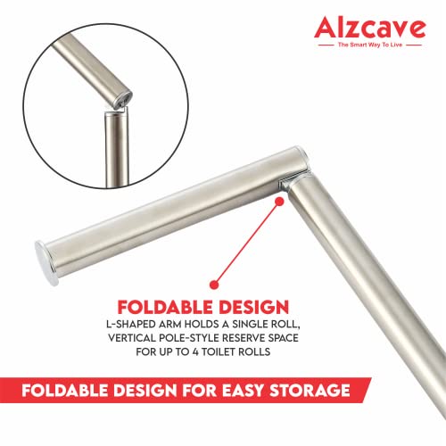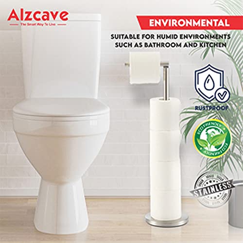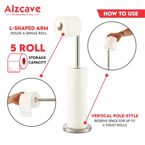 Alzcave - (الزكيف) 2 في 1 رشيقة وعصرية - حامل ورق تواليت قائم بذاته - حامل ورق تواليت من الستانلس ستيل - موزع تخزين 5 بكرات تواليت - حامل ورق التواليت بقاعدة ثقيلة