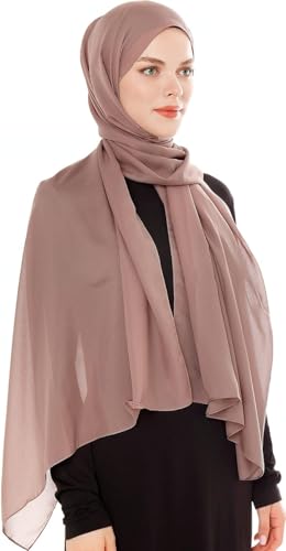 AM-SHOP - سكارف سادة وناعم للنساء من ايه ام شوب، مقاس مناسب بلون كافيه ايه ام سادة، شيفون 52