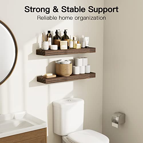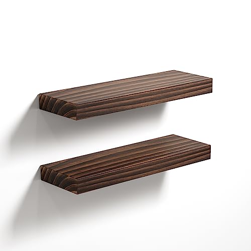 AMADA HOMEFURNISHING - أمادا هومفورنيشينج ارفف عائمة، ارفف حائط من خشب الصنوبر الصلب مقاس 24 انش مع دعامة معززة من قطعة واحدة لغرفة المعيشة والحمام وغرفة النوم والمطبخ والتخزين والتنظيم المكتبي، مجموعة من قطعتين، لون جوزي