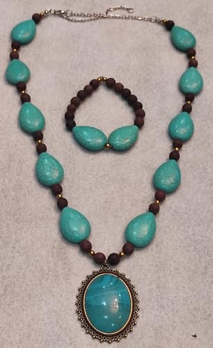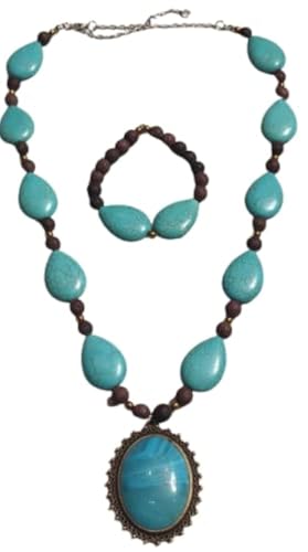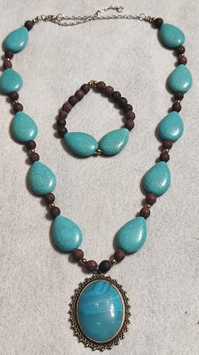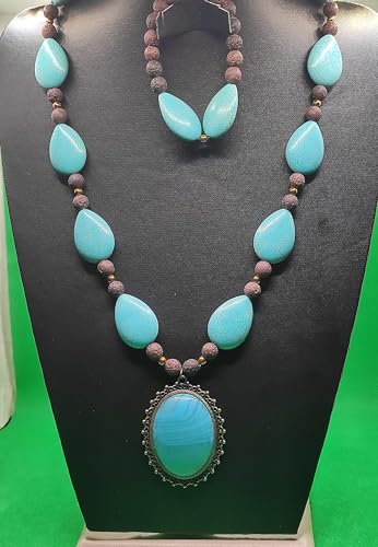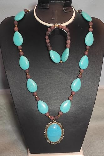 Generic - طقم من عقد واسورة من الحجر البركاني والفيروز والهماتيت-الوان متعددة-دلاية فيروزي نحاس-من مليكة للاكسسوارات، ال اي سي، للنساء