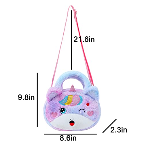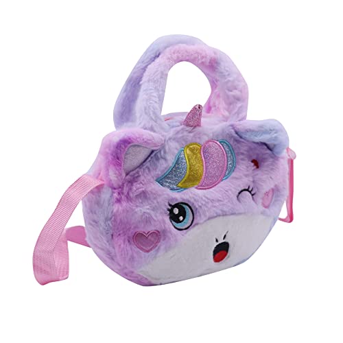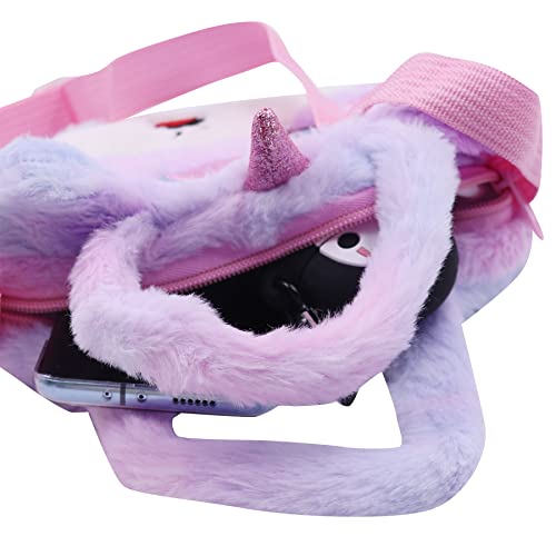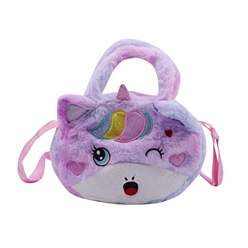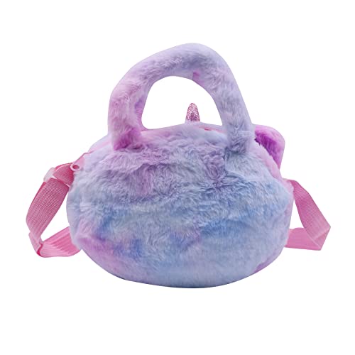 Amamcy - شنطة كروس من الفرو الصناعي بتصميم يونيكورن لطيف للبنات يد ومحفظة قطيفة على الكتف حيوانات منفوشة لون ارجواني مصبوغ مقاس واحد