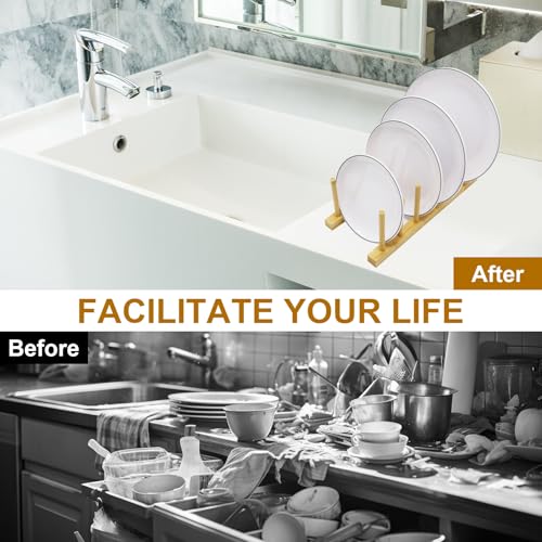 AMANDELIZABE - حامل أطباق المطبخ من خشب الخيزران من امانديليزابي، منظم صفاية الأطباق والأكواب وأغطية الحلل (1، 6 فتحات)