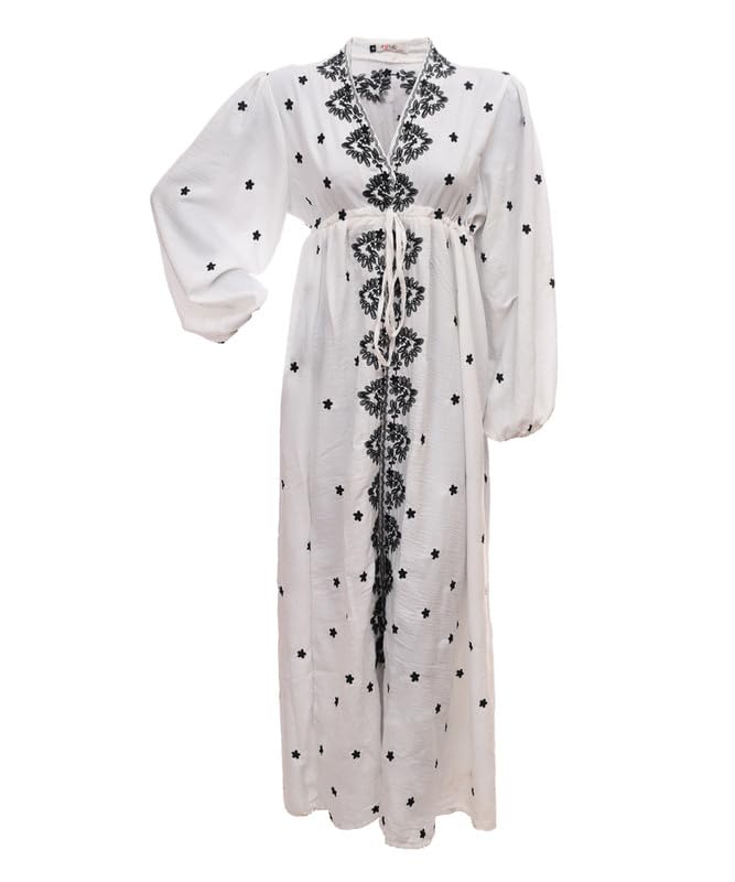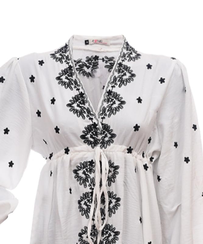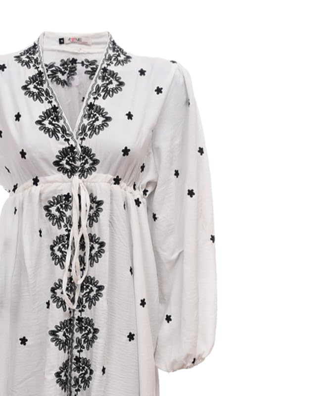 AMANY MAGDY - فستان قصير من الكتان باكمام طويلة وقبة V وحزام عند الخصر للنساء من اماني مجدي