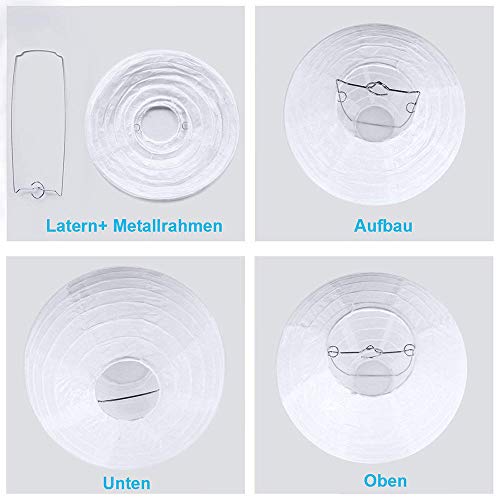 Amasawa - مجموعة فوانيس ورقية صينية، فانوس ورقي مناسب لاحتفالات الزفاف والكريسماس والباركيه والمنزل وأعياد الميلاد والحفلات وأكثر من 12 قطعة من أماساوا 20 سم، أبيض