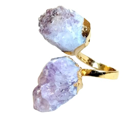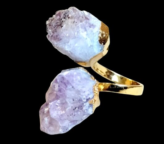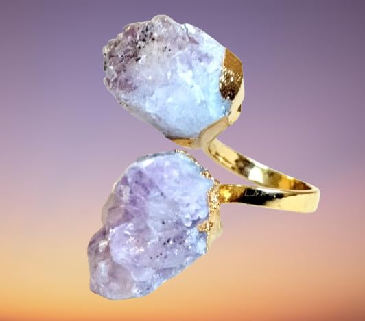Generic - خاتم ذهبي اللون بحجر مزدوج طبيعي أماتيست - جمشت رائع مناسب لجميع المقاسات والمناسبات وبسعر مخفض احجار كريمة