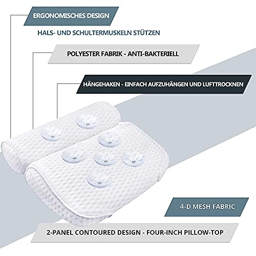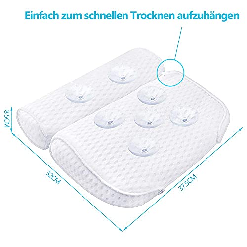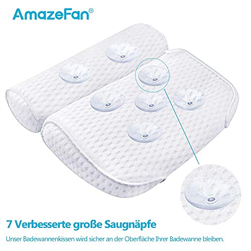 AmazeFan - مخدة حمام لحوض الحمام والمنتجعات الصحية من اميز فان، تأتي مع تقنية شبكة هوائية رباعية الأبعاد و7 أكواب شفط، وظيفة دعم الرأس والظهر والكتف والرقبة، مناسبة لأحواض الحمام والمنتجعات الصحية المنزلية