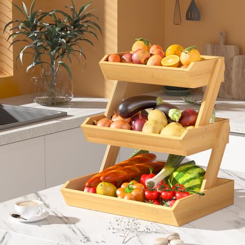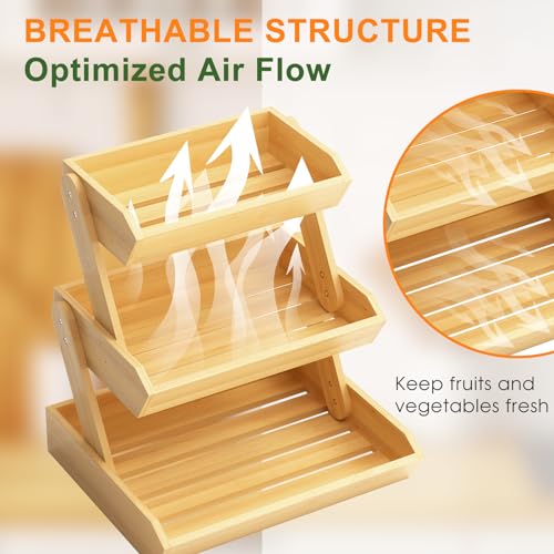 Amazer - سلة فواكه، سلة فاكهة من الخشب مكونة من 3 طبقات للمطبخ من امازر