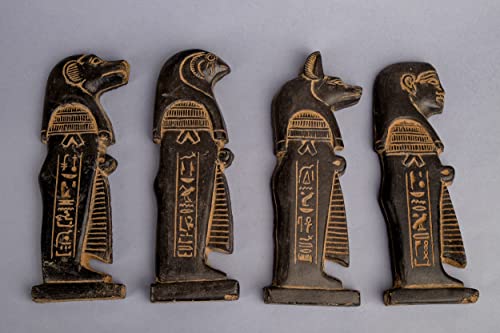 generic - الرباعي المهيب أنوبيس وإيزيس وبابون وحورس، تماثيل الآلهة الأربعة حاملة ريشة ماعت مصنوعة من حجر البازلت الأصيل، صنع في مصر