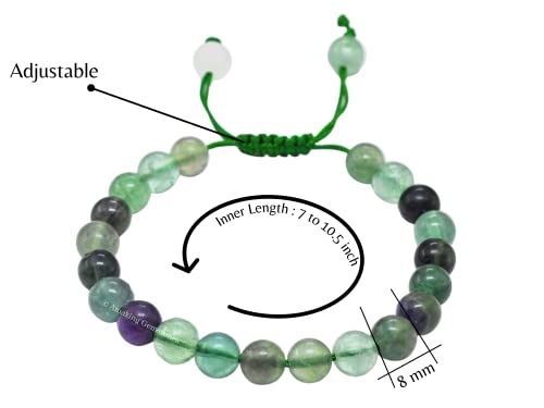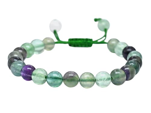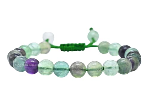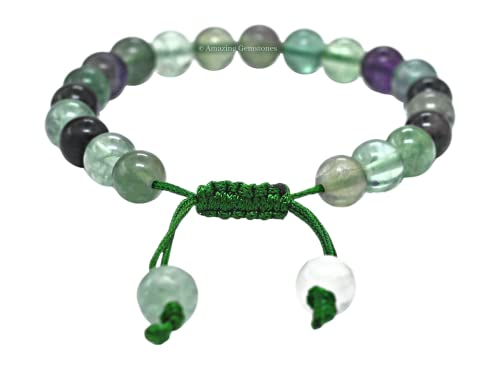 Amazing Gemstone - سوار كريستالي مناسب للجنسين من شاكرا، جودة عالية A+، سوار قابل للتعديل مقاس 8 ملم مصنوع من احجار كريستالية مميزة وانيقة