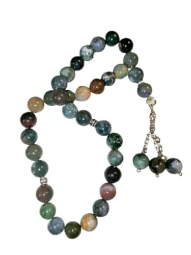 Generic - مسبحة من العقيق الطحلبي الطبيعي 33 خرزة باللون الوردي
