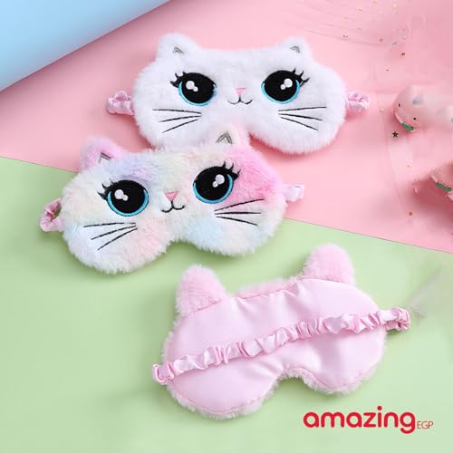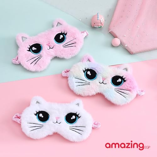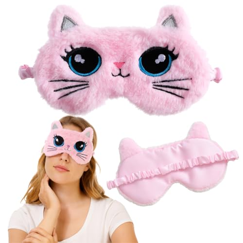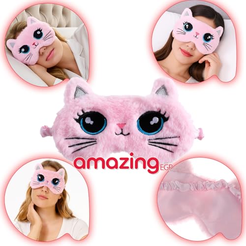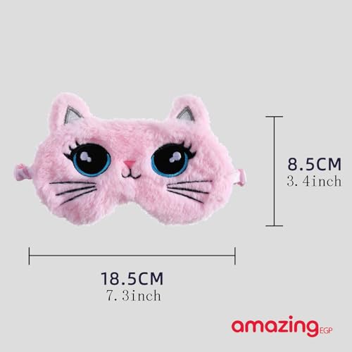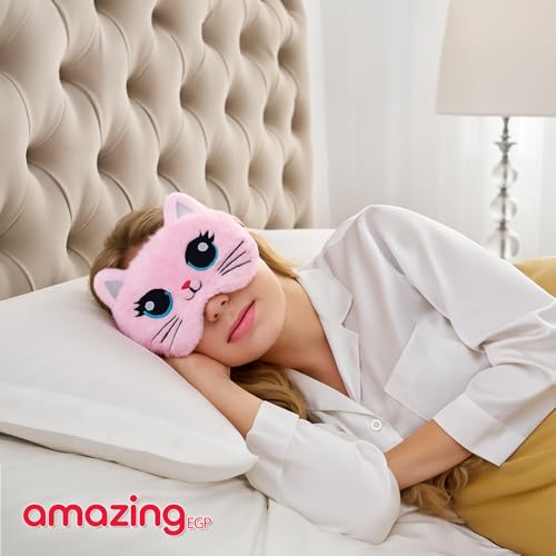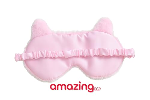 THE PACK - قناع نوم بتصميم قطة كرتونية، مصنوع من مزيج قطن وبوليستر ناعم، حزام قابل للتعديل وحاجب للضوء من اميزينج اي جي بي، وردي، 18.5 سم × 8.5 سم