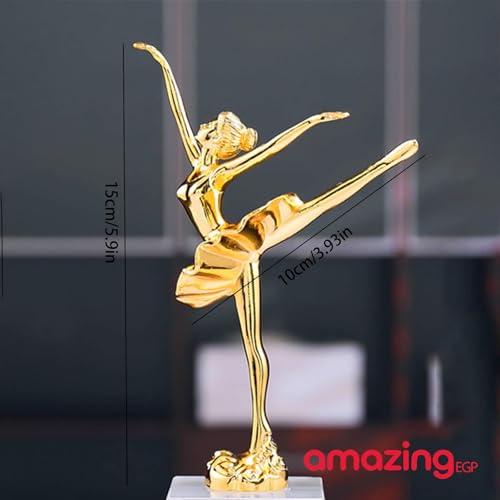 THE PACK - منحوتة راقصة باليه ذهبية مصنوعة من الراتنج والحجر الرملي بقاعدة رخامية، تمثال ديكور للمنزل والمكتب من اميزينج اي جي بي، ارتفاع 14.5 سم