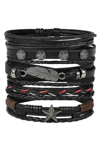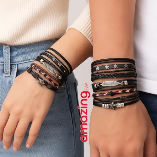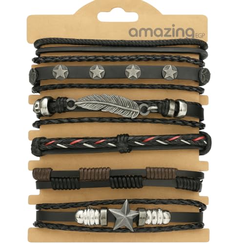 THE PACK - إسورة من أمايزينج إي جي بي للجنسين، مصنوعة من الجلد والمعدن، بلون أسود وتصميم بوهيمي، مقاس 23 سم