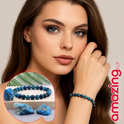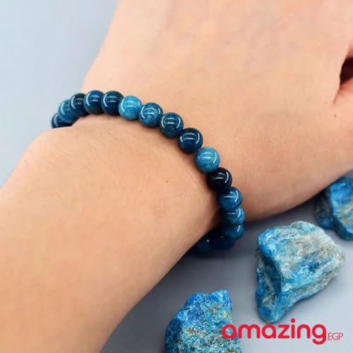 THE PACK - سوار خرز من حجر الاباتيت الازرق الطبيعي، 23 سم، مجوهرات احجار كريمة مرنة للجنسين لليوجا والتامل من اميزينج اي جي بي