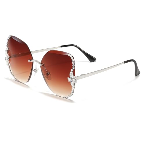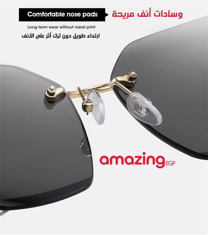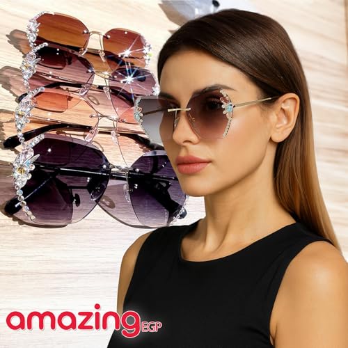 THE PACK - نظارة شمسية كبيرة الحجم بدون اطار للنساء من اميزينج اي جي بي، ظلال مربعة مرصعة باحجار الراين، اطار ذهبي مع عدسات بنية